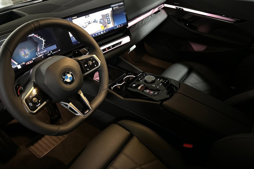 WHEELS: 20" X 8.5" FR & 20" X 10" RR AERO -inc: Style 939M, M bicolor black/grey, Tires: 245/40R20 Fr & 275/35R20 Rr Staggered AS, REMOTE ENGINE START, PREMIUM PACKAGE -inc: Remote Engine Start, BMW Curved Display w/HUD, Parking View w/3D View (Surround View), Heated Steering Wheel, Interior Camera, Driving Assistant Plus, Distance Control Assist (DCA) w/Steering Assistant, Premium Content 1, Parking Assistant Plus, M SPORT PROFESSIONAL PACKAGE -inc: launch control and expert mode, M Sport Package Pro, Extended Shadowline Trim, Rear Spoiler, M Sport Pro Contents, M Sport Brakes w/Red Calipers, M Shadowline Lights, BMW Iconic Glow Kidney Grille, M SPORT PACKAGE -inc: Shadowline Exterior Trim, M Steering Wheel, M Sport Exterior Elements, M Sport Content, M Sport Pkg, M Sport Brakes w/Blue Calipers, M Sport Interior Elements, M Sport Suspension, Wheels: 19" x 8.5" M Dual-Spoke Bicolor Black, Style 935M, HEATED STEERING WHEEL, FRONT VENTILATED SEATS, FINE WOOD GREY BLUE OPEN PORE ASH TRIM -inc: dark silver accent, DARK GRAPHITE METALLIC, BMW ICONIC GLOW KIDNEY GRILLE. This BMW 5 Series has a powerful Intercooled Turbo Gas/Electric I-6 3.0 L/183 engine powering this Automatic transmission.