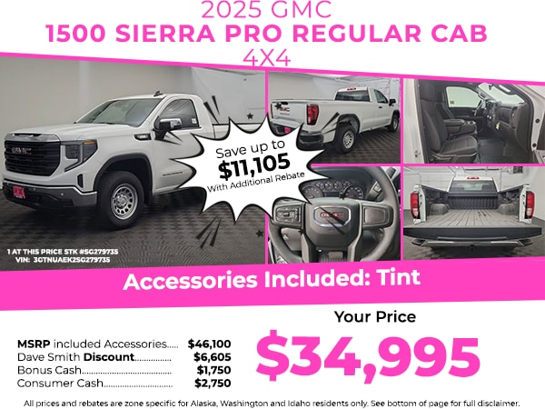 PackagesConvenience Package: LED Cargo Area Lighting; EZ Lift Power Lock and Release Tailgate; Deep-Tinted Glass; Electric Rear-Window Defogger. Pro Value Package: Trailering Package. 1SA Safety Plus Package: Rear Cross Traffic Braking; Ultrasonic Front and Rear Park Assist; Perimeter Lighting; Lane Change Alert with Side Blind Zone Alert; Chrome Mirror Caps. Preferred Equipment Group 1SA: OnStar Services Capable; HD Rear Vision Camera; Power Front Windows with Passenger Express Down; Remote Keyless Entry; 17" X 8" Silver Painted Steel Wheels; Solar Absorbing Tinted Glass; 220 Amp Alternator; Chrome Header with Flat Black Grille Insert Bars; Single Speed Transfer Case; Power Front Windows with Driver Express Up/down; GMC Pro Safety; Front Frame-Mounted Black Recovery Hooks; Wi-Fi Hotspot Capable; Push Button Start; Front 40/20/40 Split-Bench Seat; TurboMax Engine; 2 Charge/data USB Ports; Power Door Locks. Spray-On Pickup Bedliner. Trailering Package. 120-Volt Interior Power Outlet. Electric Rear-Window Defogger. Deep-Tinted Glass. EZ Lift Power Lock and Release Tailgate. LED Cargo Area Lighting. **Equipment listed is based on original vehicle build and subject to change. Please confirm the accuracy of the included equipment by calling the dealer prior to purchase.**