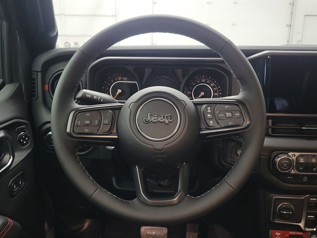 The leather seats in this unit are a must for buyers looking for comfort, durability, and style. Keep your hands warm all winter with a heated steering wheel in the vehicle . This vehicle offers Apple CarPlay for seamless connectivity. This vehicle offers Automatic Climate Control for personalized comfort. It's Forward Collision Warning system alerts the driver to potential front-end collisions, enhancing safety. See what's behind you with the back up camera on this Jeep Gladiator. This Jeep Gladiator offers Android Auto for seamless smartphone integration. Start this 2026 Jeep Gladiator from inside with remote start. An off-road package is equipped on this model. This unit has automated speed control that adjusts to maintain a safe following distance, enhancing highway driving convenience. Bluetooth technology is built into this 1/2 ton pickup, keeping your hands on the steering wheel and your focus on the road. Maintaining a stable interior temperature in this vehicle is easy with the climate control system.